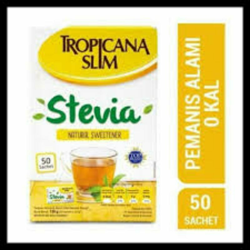 tropicana slim stevia, pemanis alami 1 pack isi 50 sachet