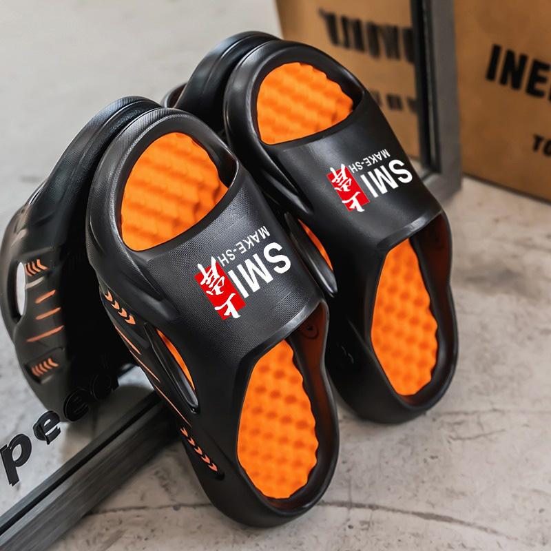 TUINANLE Летние модные мужские тапочки Удобная нескользящая пляжная обувь Повседневные тапочки большого размера 44-45 оранжевый/чёрный