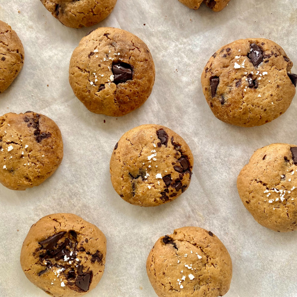 - Dark: adonan vanilla soft cookies dan potongan dark chocolate 70% dari Callebaut serta taburan sea salt di atasnya