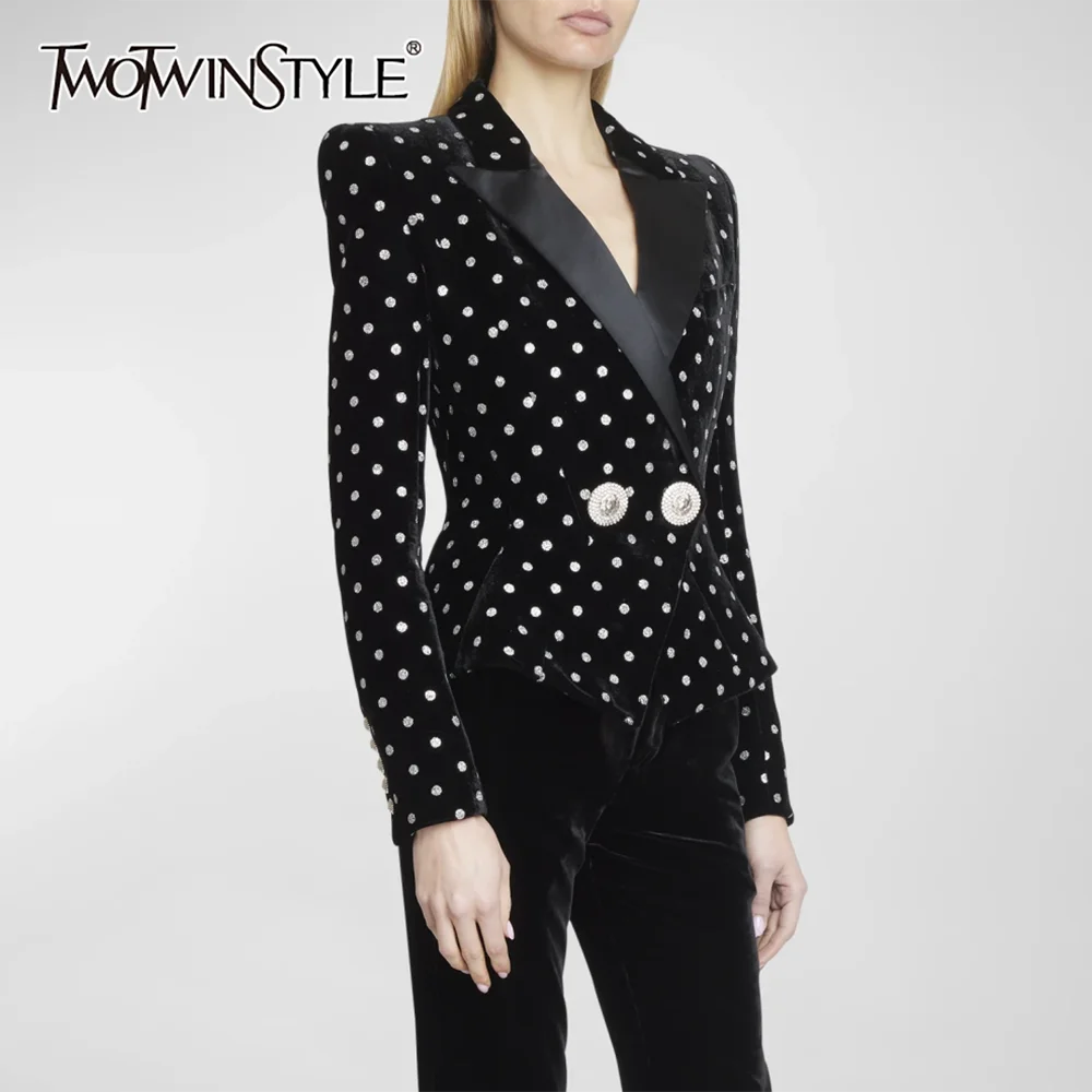 TWOTWINSTYLE, черное роскошное платье в горошек, женское утягивающее офисное женское платье с лацканами и длинными рукавами, осенняя мода