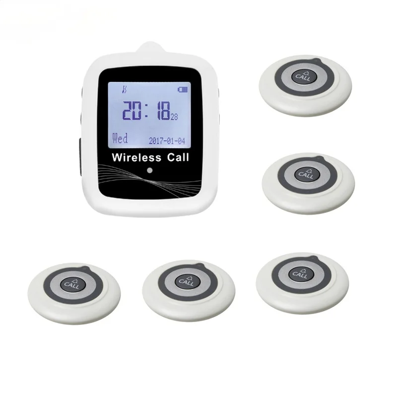 Table Restaurant Pagers Beeper Wireless Calling System 1 Watch Receiver + 5 Removable Button For Service Cafe Hookah