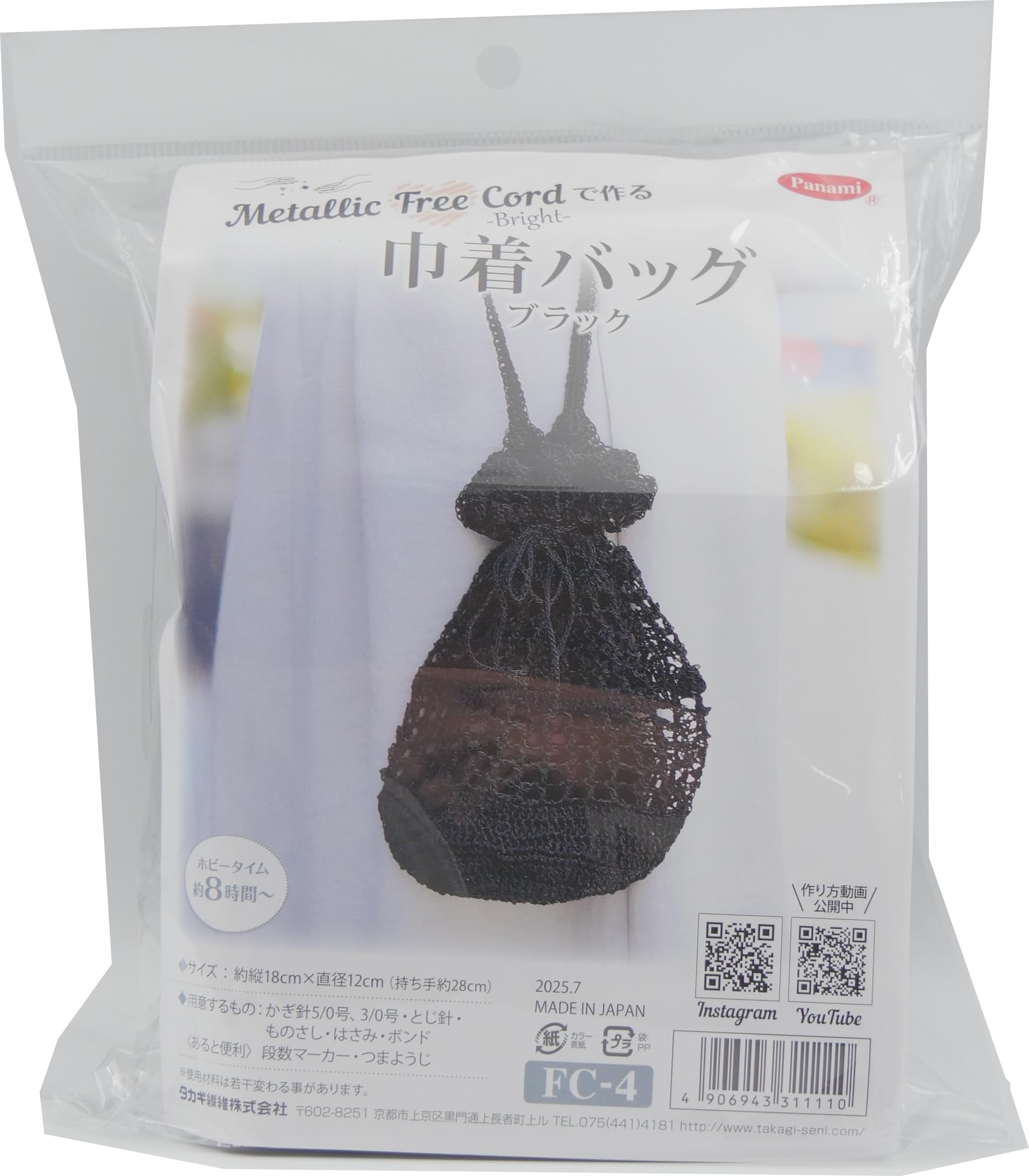 Takagi Fiber Panami Вязание Вязание Сумка на шнурке с металлизированным шнуром бесплатно Яркий набор (черный) FC-4 чёрный