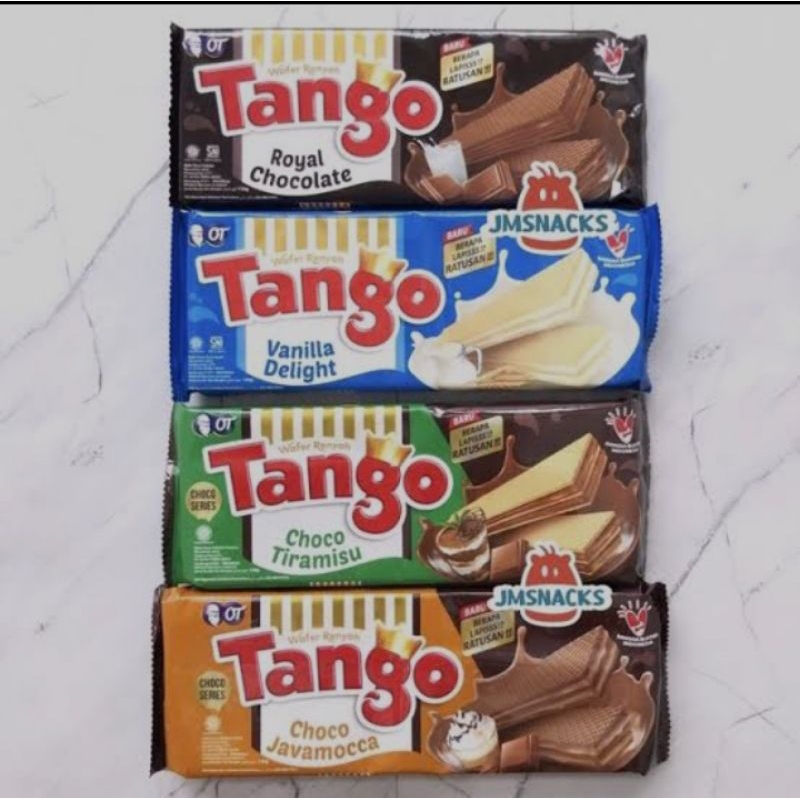 Tango Wafer merupakan camilan wafer renyah yang terbuat dari bahan-bahan berkualitas. Dengan rasa krim yang manis dan tekstur wafer yang renyah, cocok sebagai camilan teman minum kopi dan teh. Tersedia dalam berbagai varian rasa.