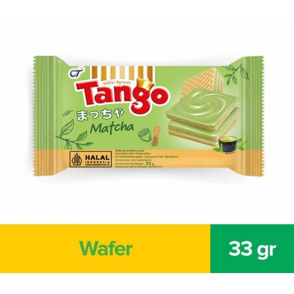 Tango Wafer Matcha 33 g menggabungkan wafer renyah khas Tango dengan krim matcha yang lembut dan tidak terlalu manis.
