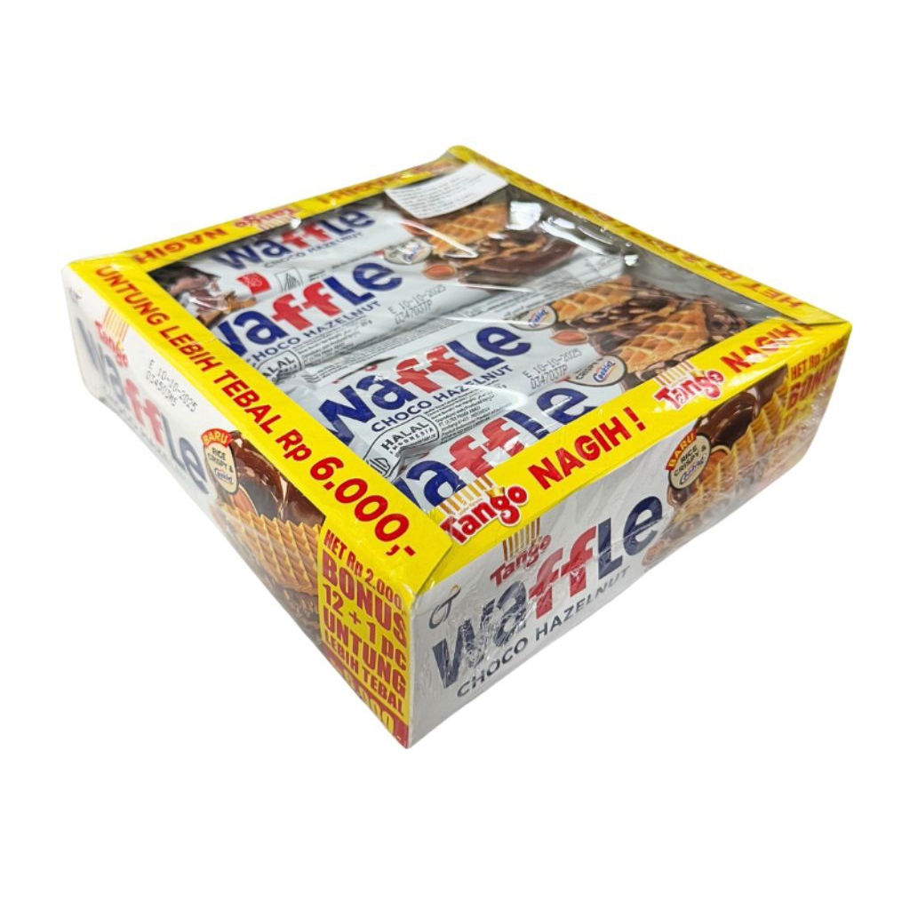 Tango Waffle Choco Hazelnut adalah camilan wafer berbentuk waffle dengan rasa cokelat hazelnut. Rasanya perpaduan antara renyahnya waffle, krim cokelat hazelnut yang tebal, dan rice crispy yang renyah.