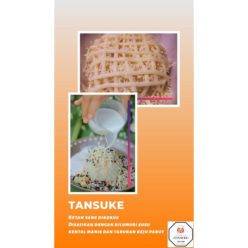 Tansuke (Ketan Susu Keju) adalah ketan yang dikukus dan disajikan dengan dilumuri susu kental manis dan taburan keju parut yang melimpah serta toping lainnya.