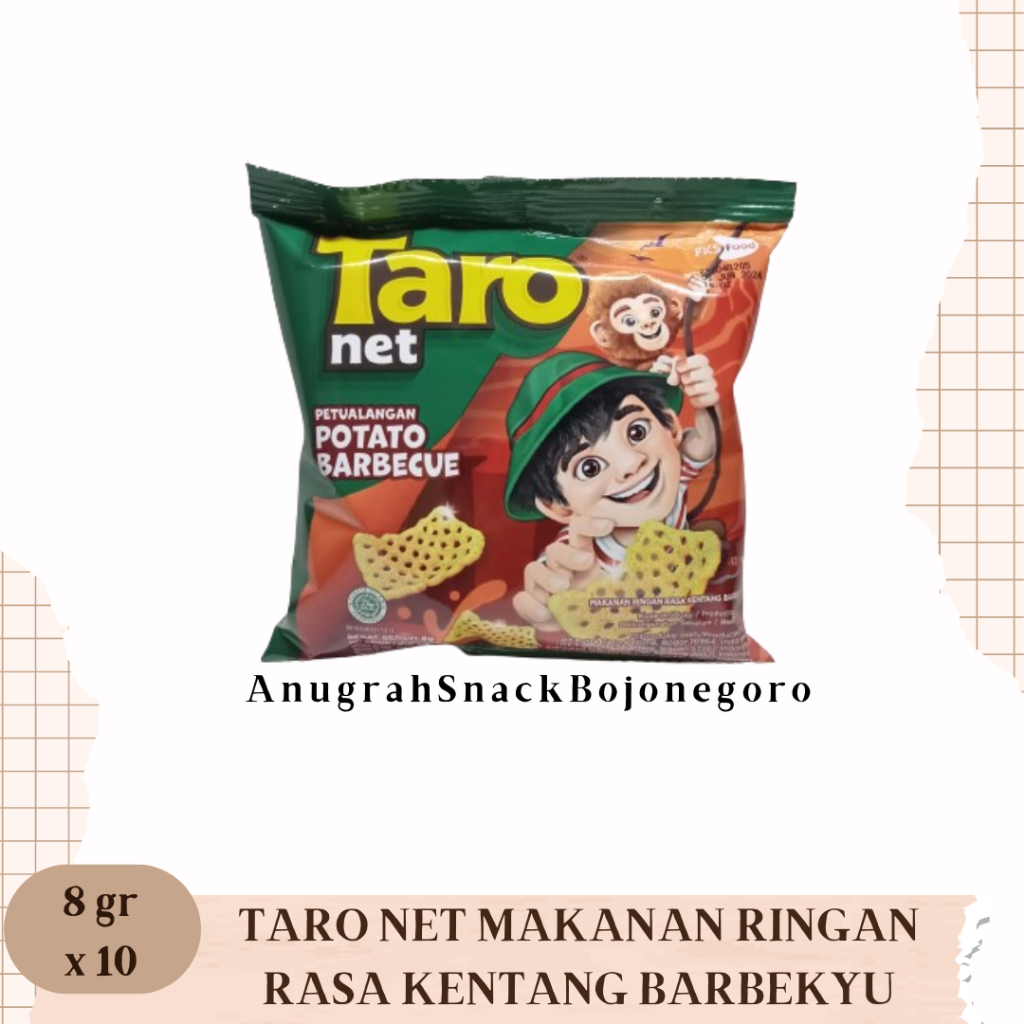 Taro Net Makanan Ringan Rasa Kentang Barbekyu Renceng 8gr x 10