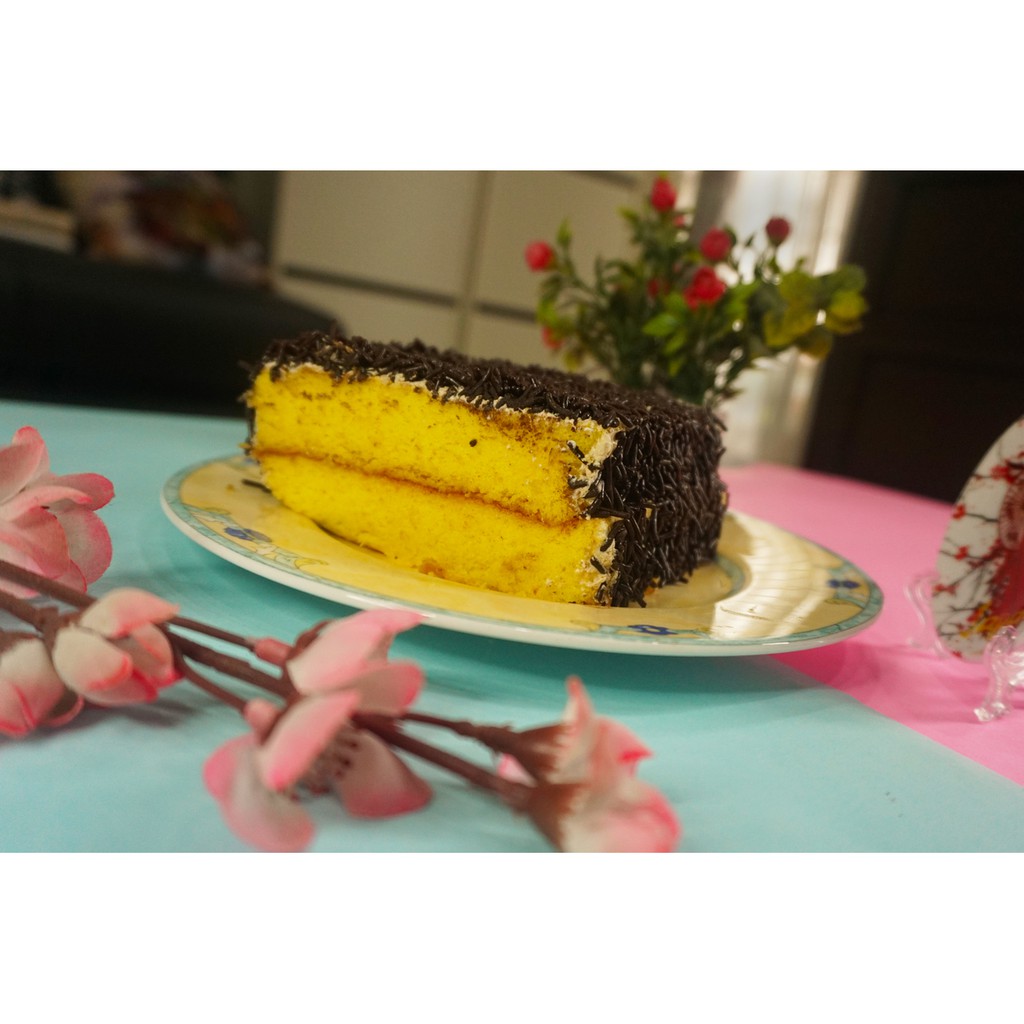 Kue Sponge dengan topping coklat.