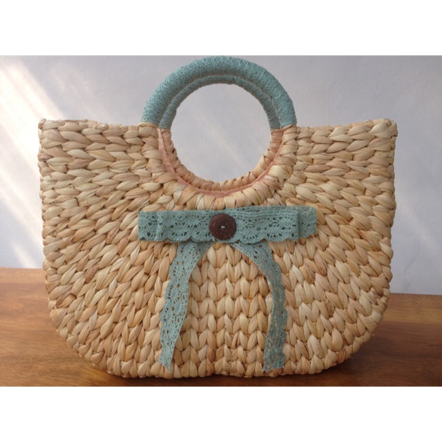 Tas Eceng Gondok dengan Pita Renda