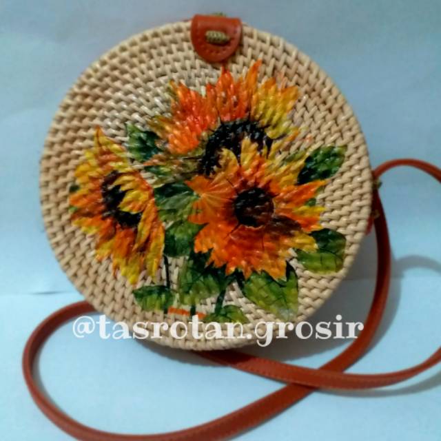 Bahan: 100% Rotan & lukis decoupage, tali semi kulit