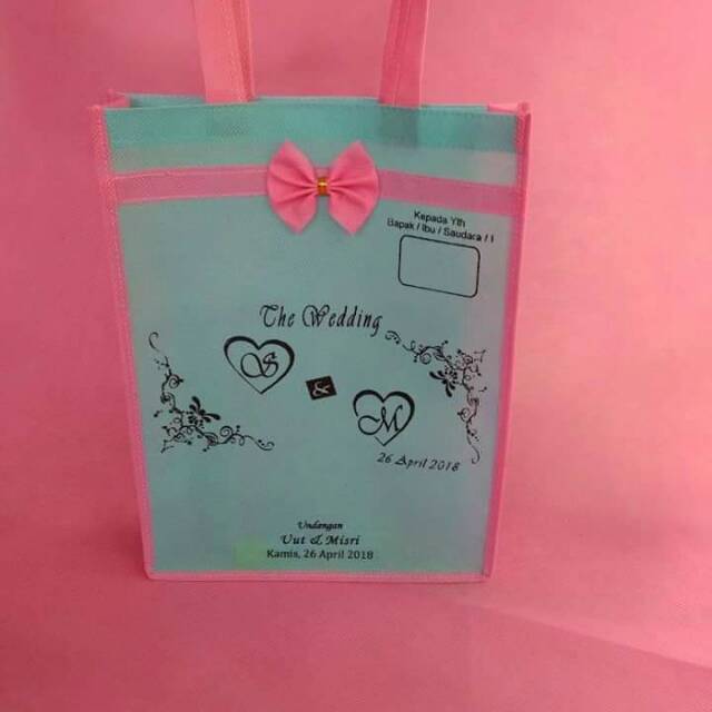 Tas sablon bisa menyesuaikan keinginan, bisa untuk acara ULTAH, pre wedding, hajatan dsn yang lain macam-macam ukuran, yang di gambar toko uku 20 x25,,