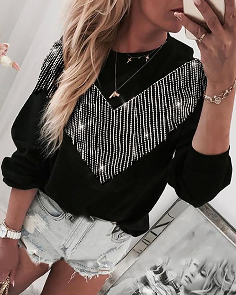 Tassel Design Patch Long Sleeve Blouse, Black