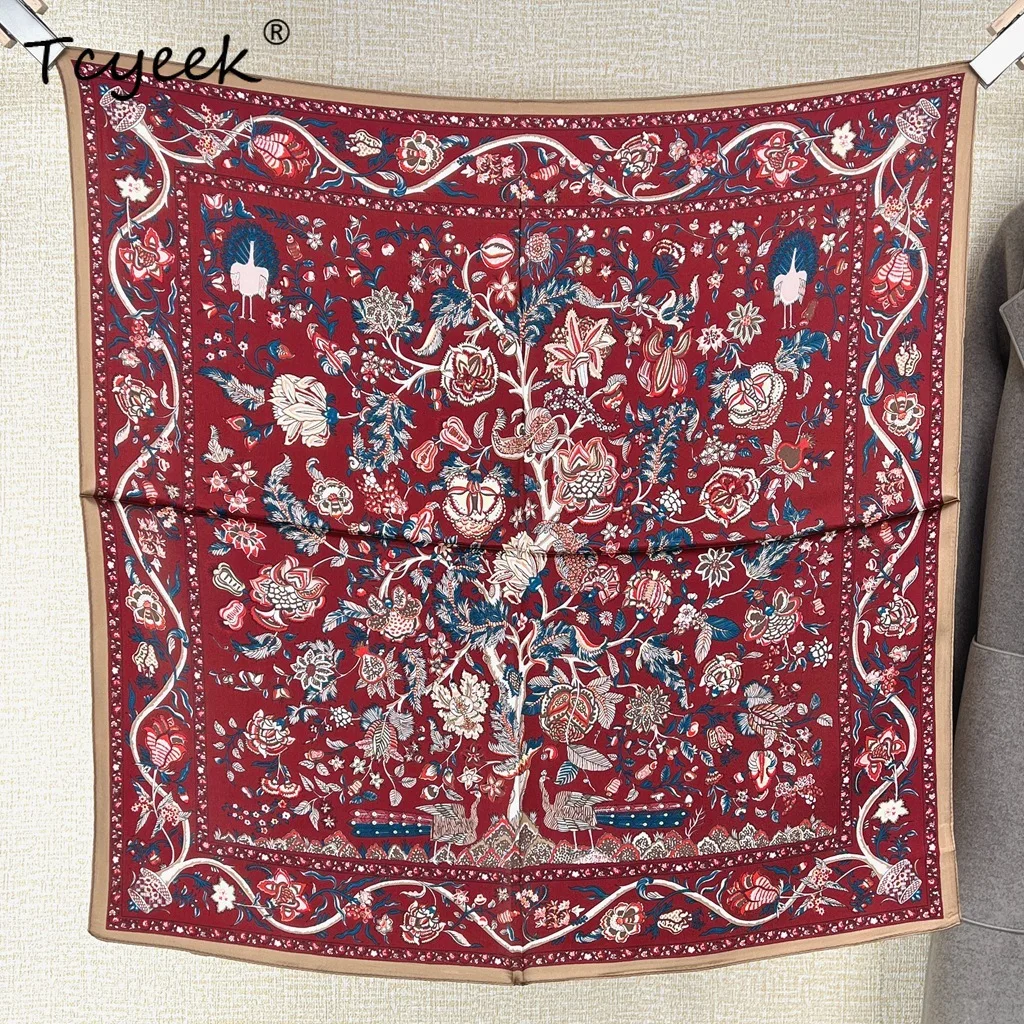 Tcyeek, элегантный платок из 100% чистого шелка, цветочный принт 68 см, шикарный ретро-шарф в подарок для мамы, лето-осень 2024 A465117QM
