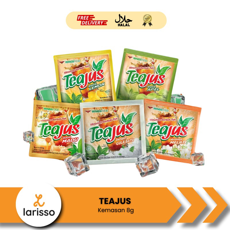 Teajus adalah perpaduan antara kenikmatan teh dengan berbagai khasiatnya dengan kesegaran sari buah yang penuh dengan vitamin C yang dibutuhkan tubuh. Produksi PT WingsFood, tersedia dalam 5 rasa yang istimewa yang membuat para pecinta teh begitu menyukainya, yaitu :
