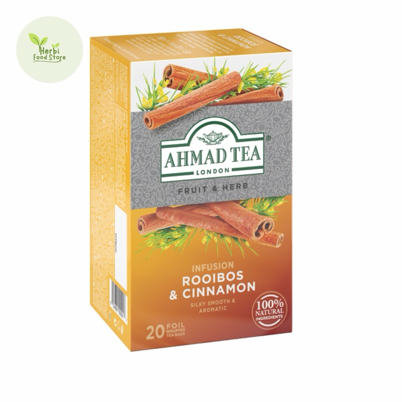 Ahmad Tea Rooibos and Cinnamon adalah campuran yang menarik antara teh rooibos yang lembut dan rempah-rempah hangat dari kayu manis. Teh rooibos sendiri berasal dari tanaman Aspalathus linearis yang tumbuh di wilayah tertentu di Afrika Selatan. Ini adalah jenis teh herbal yang populer karena kaya akan antioksidan dan rendah kafein. Ketika dipadukan dengan kayu manis, aroma dan cita rasanya menjadi semakin kaya dan hangat. Rasa manis dan rempah-rempah dari kayu manis menyatu sempurna dengan kelembutan dan kehangatan teh rooibos, menciptakan minuman yang menggugah dan menyenangkan.