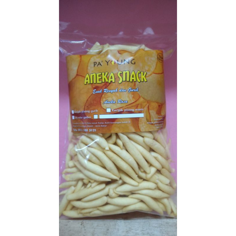 Terbuat dari bahan dasar tepung terigu, telor, keju, penyedap rasa.