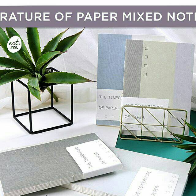 ------------------------------------------ Buku seri Temperature of Paper ini memiliki sampul minimalis berlatar kombinasi warna-warna pastel biru-abu-hitam. Gunakan buku ini sehari-hari untuk menggambar atau menulis. Dua jenis kertas di dalamnya -polos dan bergaris- cocok bagi yang membutuhkan kebebasan lebih.