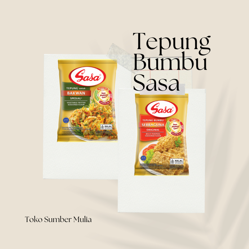 Sasa Tepung Bumbu Serbaguna Original terbuat dari berbagai kombinasi rempah pilihan yang dapat menghasillkan gorengan dengan kaya rasa, krispi, dan memiliki aroma yang khas dari bumbunya. Tepung serbaguna ini sangat praktis dan mudah digunakan tanpa perlu menambahkan tambahan bumbu lainnya.