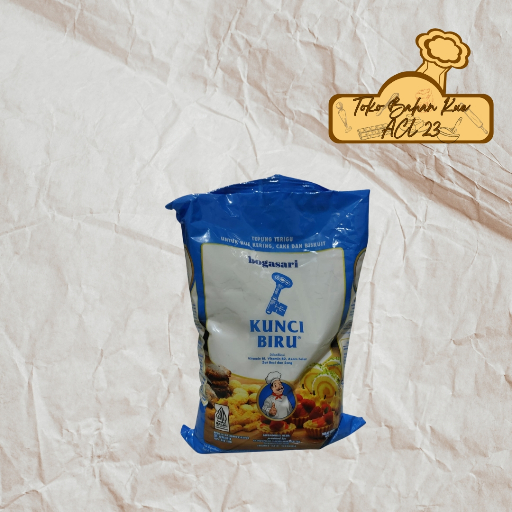 Tepung Kunci Biru/Tepung Terigu/Tepung Roti Rendah Protein 1Kg.