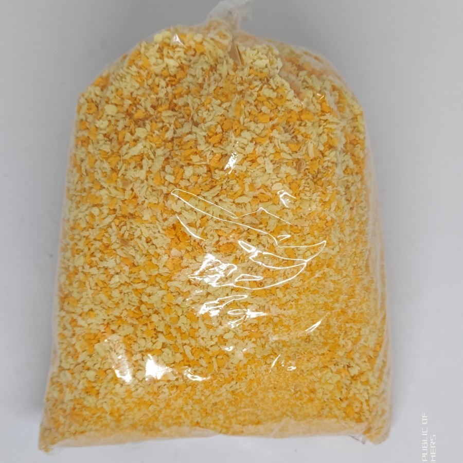 Tepung roti ini terbuat dari bahan terigu berkualitas, sehingga harum aromanya, ranyah dan garing serta sedap rasanya. Tepung roti dengan butiran yang halus dam lembut, sangat cocok untuk membuat udang goreng tepung, daging sapi, ayam, ikan dan lain.