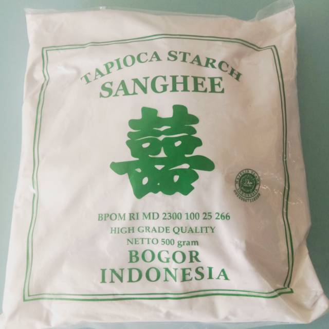 Tepung tapioka berat 500 gram. Cocok digunakan untuk membuat bermacam kue seperti bika ambon, kerupuk, pempek, kue bangkit, dll.