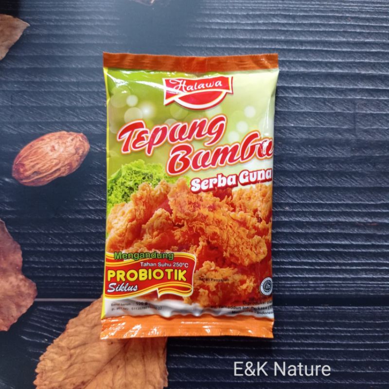 Tepung bumbu krispi halawa dibuat dengan racikan yang pas antara tepung dengan bumbu alami, menghasilkan gorengan dengan tekstur garing dan renyah serta aroma yang menggugah selera. Dilengkapi dengan probiotik siklus yang dapat meningkatkan cita rasa.