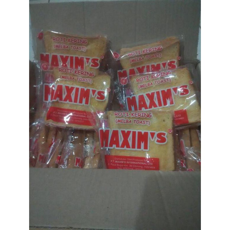 Stock Selalu Ready, Fresh From The Oven, Langsung ambil dari pabrik setiap ada order, Tanpa Pengawet, Expired sekitar 3 bulan. Silahkan Langsung Order br/ br/ Roti Kering Maxim 1 dus isi 20 kemasan, 1 kemasan isi 2 keping. br/ Rasanya enak, pas dinikmati dengan kopi, teh ataupun minuman lain nya..