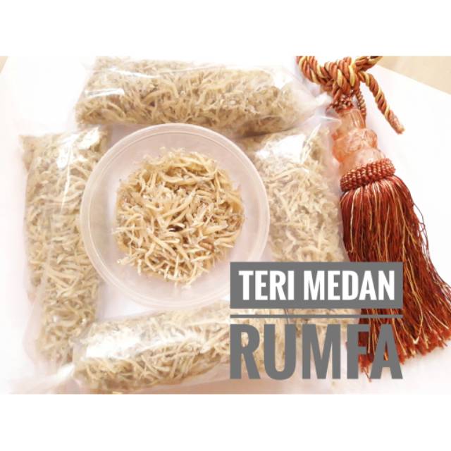 Teri medan mentah, berat 1 ons/bungkus. Teri kualitas sedang.