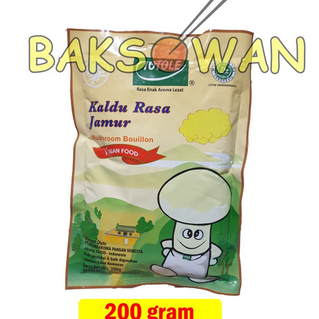 Terlaku. Totole Kaldu Jamur / Kaldu Rasa Jamur TOTOLE 200gr Kaldu Jamur TOTOLE adalah bumbu memasak bubuk yang terbuat dari jamur, dan kini telah memiliki label HALAL MUI. Totole sangat cocok digunakan untuk membuat makanan tumis, kukus, sup atau kuah yang anda inginkan menjadi lebih nikmat untuk di makan bersama keluarga. Sangat sesuai untuk vegetarian dan halal karena 100% berbahan jamur, dan sudah tentu aman dikonsumsi oleh semuanya. PENYIMPANAN : Kondisi penyimpanan: di tempat kering / sejuk dan tidak terkena sinar matahari langsung. Ada 4 ukuran = 40 gram 80 gram 200 gram 400 gram TATA CARA PEMESANAN DAN PENGIRIMAN : 1. Tanyakan terlebih dahulu stok melalui DM. 2. Pemesanan akan diproses paling lambat H+1 (jika antrian packing panjang). Untuk pengiriman lebih aman, kami sarankan anda untuk membeli packing bubble wrap. - Fast respon jam kerja Senin - Sabtu pukul 8.00 - 16.00, Minggu atau hari libur Off - Mohon mencantumkan warna/gambar/varian pilihan dan cadangannya (jika ada) di kolom pemesanan ya. Jika tidak mencantumkan pilihan, maka akan kami kirimkan sesuai stok yang ready!!! - Pengiriman pada Hari yang sama (malamnya). - Jika barang yang di pesan kosong dan tidak ada respon selama 1x24 jam maka akan di kirim secara random. - Periksa kembali NOMOR HP (TELP) & ALAMAT LENGKAP. Guna mempercepat dan memperlancar pengiriman. - BARANG YANG SUDAH DI BELI TIDAK BISA DI KEMBALIKAN. - Gudang kita ada di Beberapa Alamat Jabodetabek... Jadi pengiriman tidak selalu sesuai alamat toko ini yaaa.. >>>> MEMBELI = SETUJU