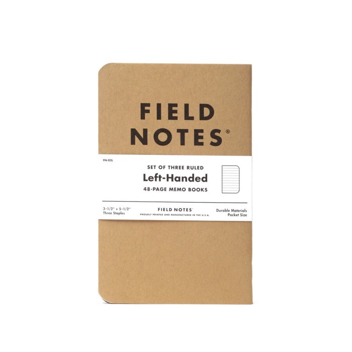 With ten percent of the worlds population left-handed, we figured it was about time to make a notebook just for them. Its identical to our Original Kraft Ruled Memo Book in every way except for this. We reversed the direction, and put the staples on the other side. Got a southpaw in your life? Get em a 3-Pack of our new Left-Handed Ruled Memo Books.