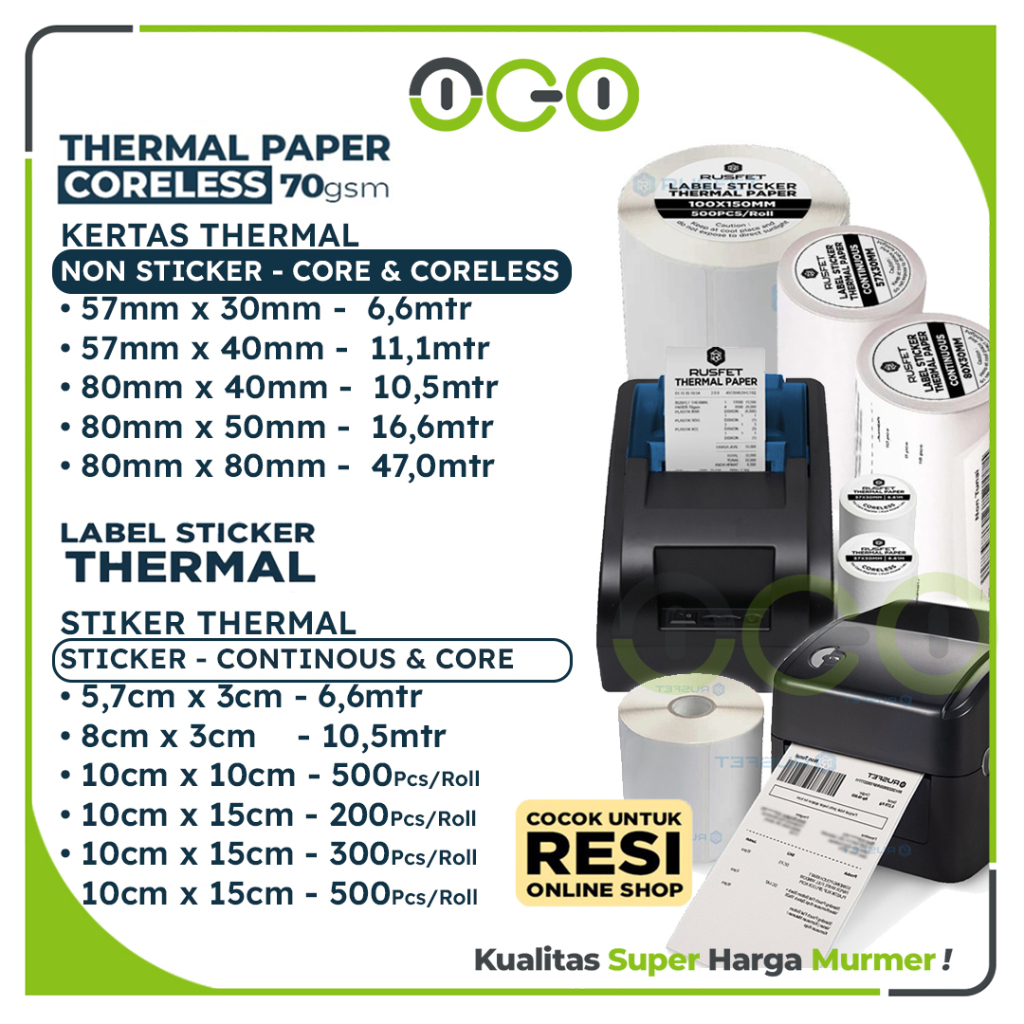 KERTAS / STICKER THERMAL | CORE / NON-CORE / CUTTER / NO CUTTER