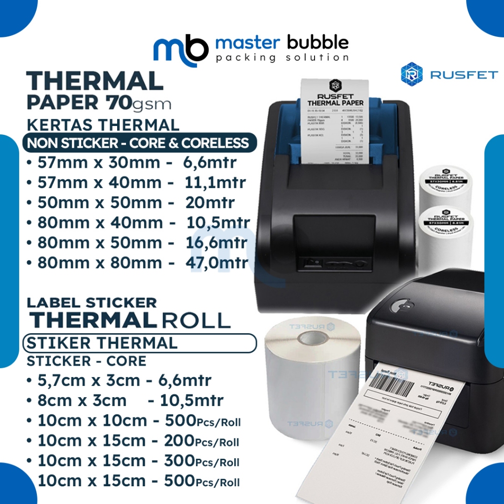 Termal Label Stiker Kertas RUSFET Sticker Paper Thermal Printer Resi Per Roll - Kertas dan Stiker