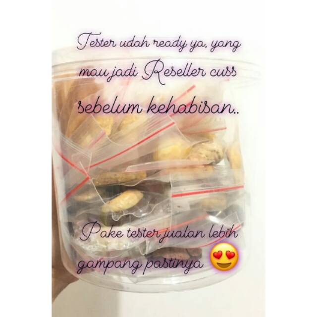 Tester cookies dengan beraneka macam cookies di dalamnya