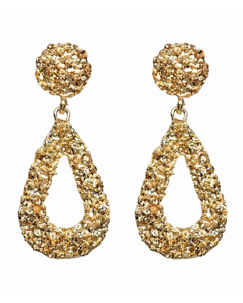 Textured Studded Teardrop Pattern Earring, Gold
