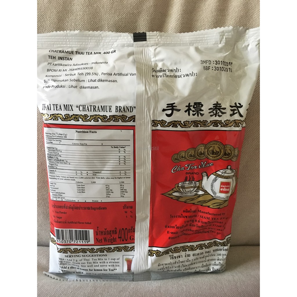 Thai Tea 400 gram merk Chatramue (dahulu bernama Number One).