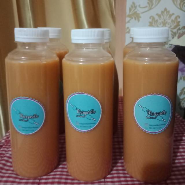 Thai tea ini dibuat berdasarkan orderan yang masuk dan dikemas dengan menggunakan botol bersegel sehingga kesegarannya sangat terjamin.