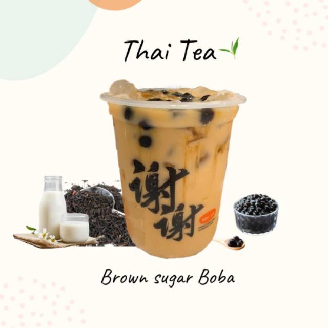 Brown sugar boba fresh milk thai tea with cheese brulee