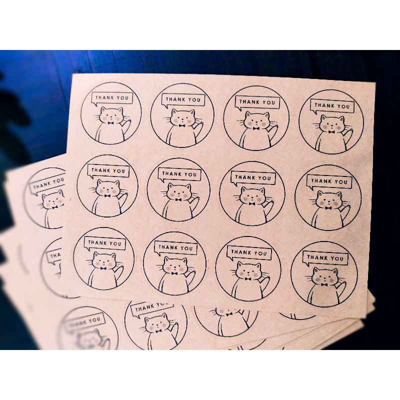 Thank You Cat Kraft Sticker 4cm diameter