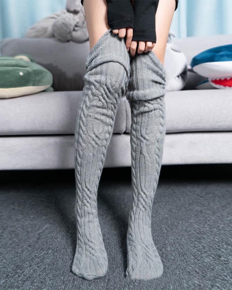 Thigh High Cable Knit Leg Warmers Winter Warm Long Boot Socks, Gray