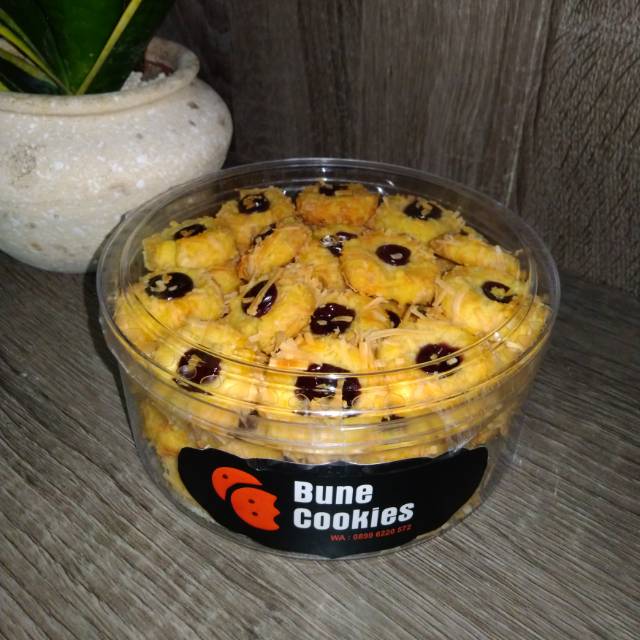 Kue thumbprint cookies buatan rumah sendiri (bukan reseller) terbuat dari bahan pilihan berkualitas, tanpa pengawet dan pemanis buatan. Nastar Cengkeh kemasan toples medium ukuran diameter 14cm tinggi 6cm berat +/-500 gram. Sangat cocok disuguhkan bersama keluarga dirumah