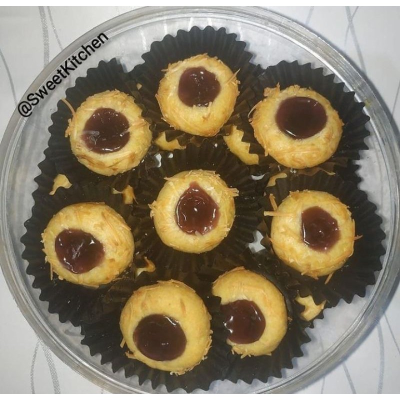 Thumbrint Cookies memiliki tekstur yang renyah yang dipadukan dengan berbagai topping ditengahnya.
