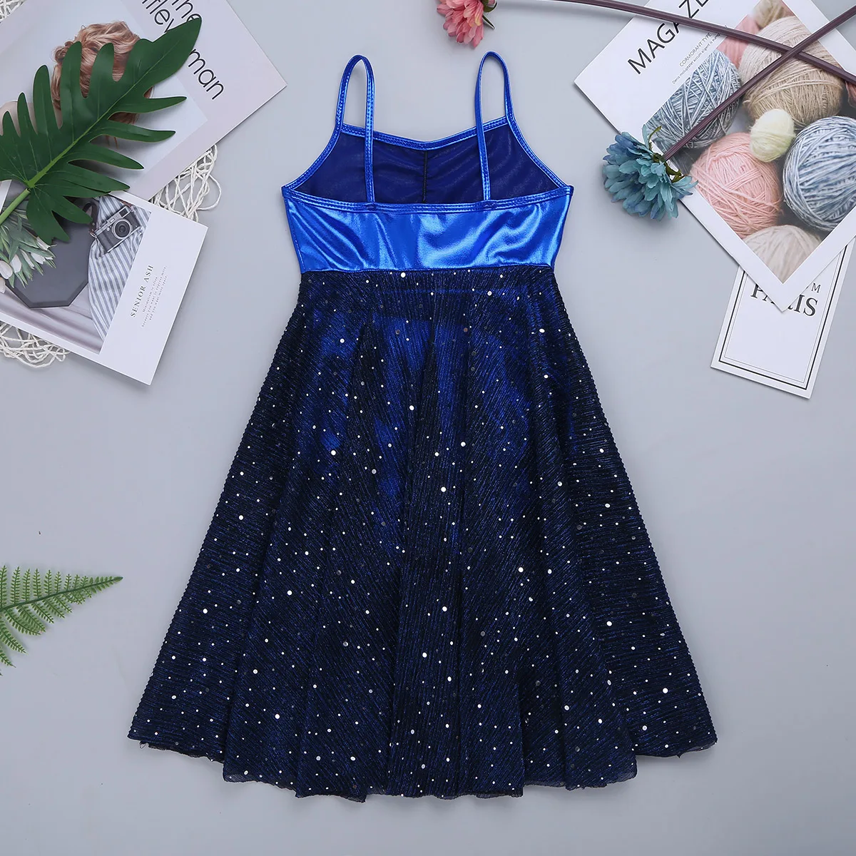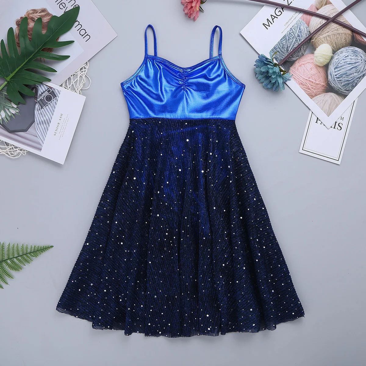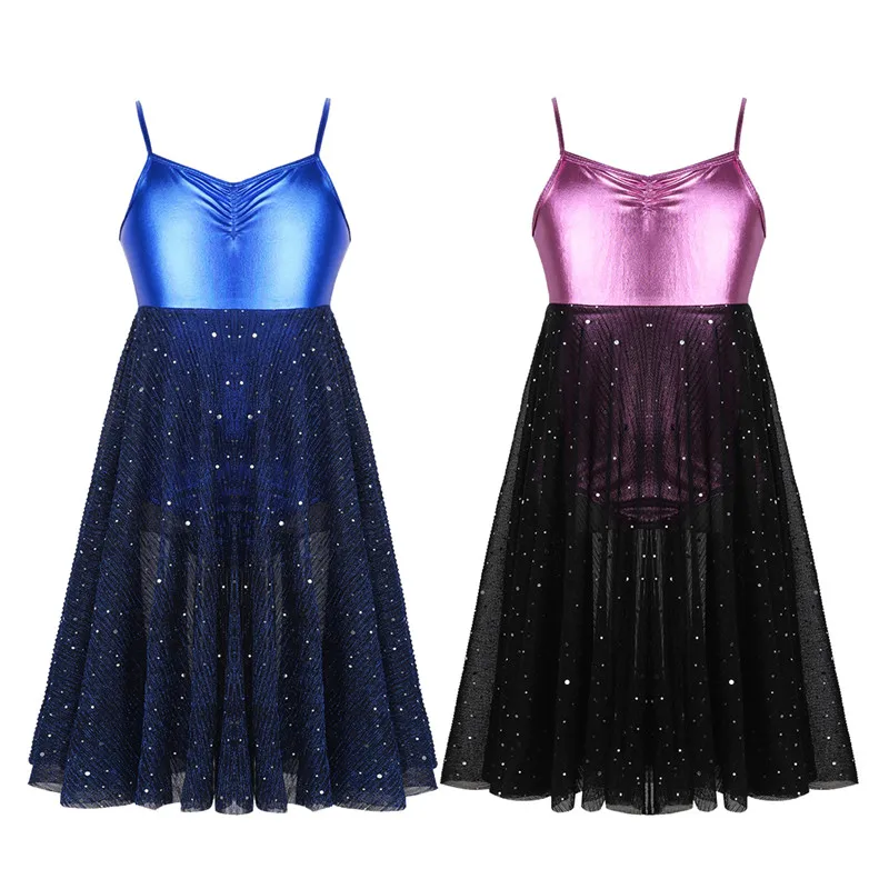 TiaoBug/детское блестящее балетное трико с блестками для девочек, Сетчатое балетное платье-пачка на тонких бретельках, Детские Сценические кос...