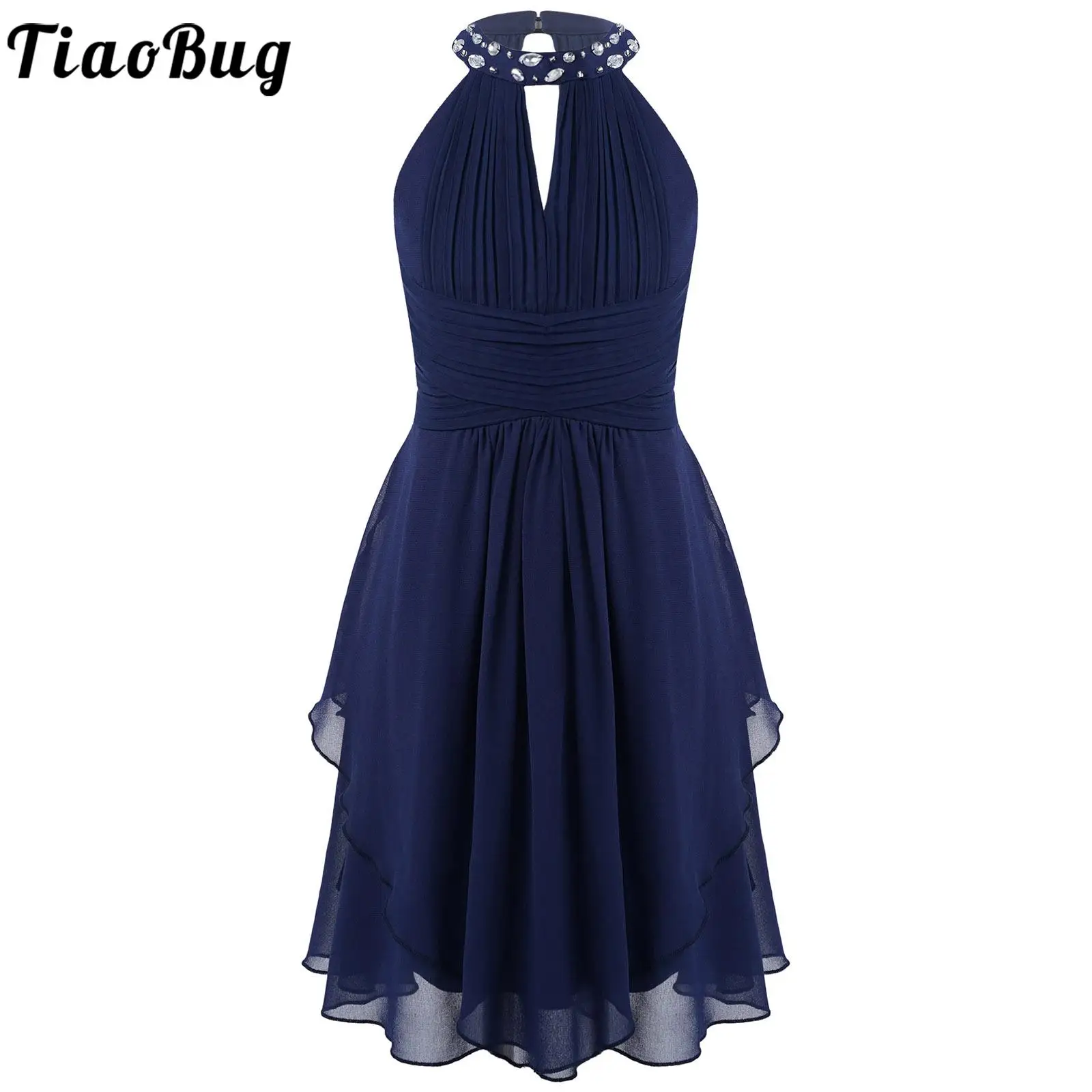 Tiaobug, для девочек-подростков, детское вечернее длинное платье с лямкой на шее, без рукавов, Тюлевое Элегантное макси, изящное платье для свад...