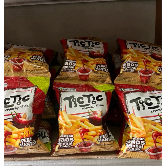 Tictic saos sambal colek merupakan varian snack crunch stick favorit yg silently dilengkapi dengan sambal colek yg akan membuat sensasi makan yg berbeda, terbuat dari bahan berkualitas yang sangat gurih dan lezat, dan ada juga variant rasa Bawang asli yg tentunya tidak kalah lezat.