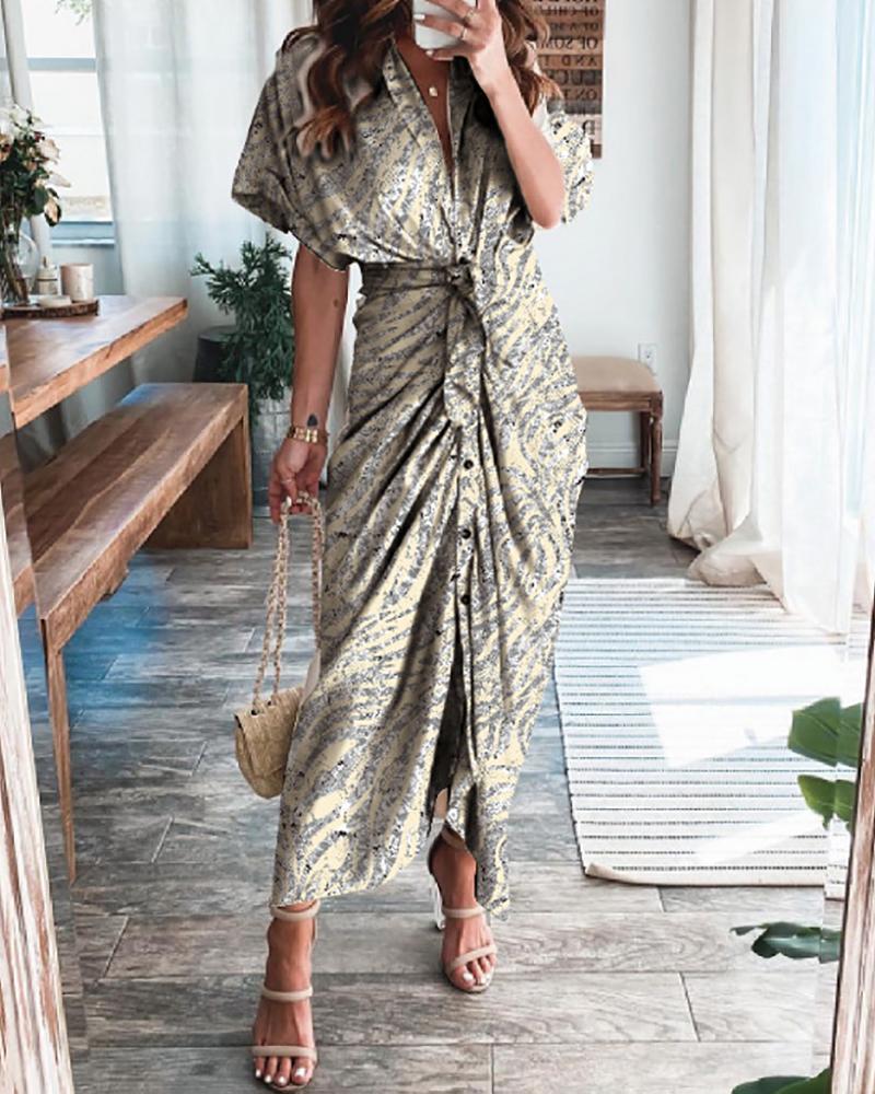 Tie Front Ruffles Ruched Button Design Colorblock Dress, Style4