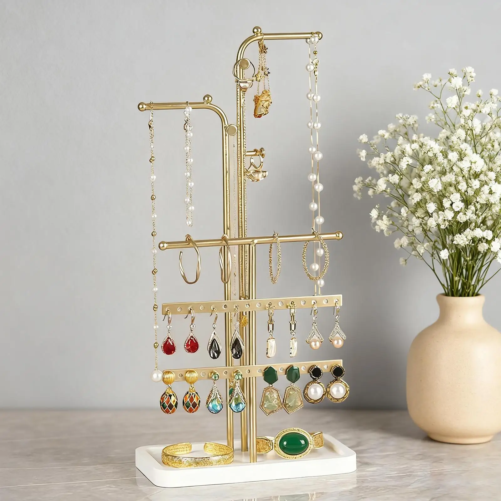 Tier Jewelry Tree Stand Earring Cards Organizer for Keychain Rings Earrings