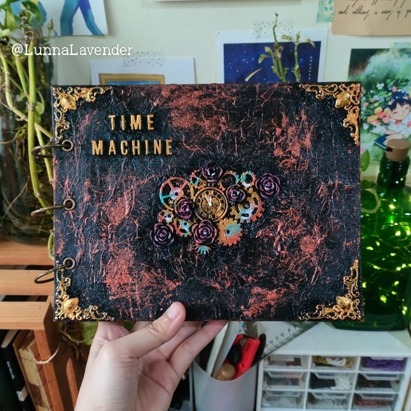 Scrapbook vintage unik dengan cover 3 dimensi tema mesin waktu ✨