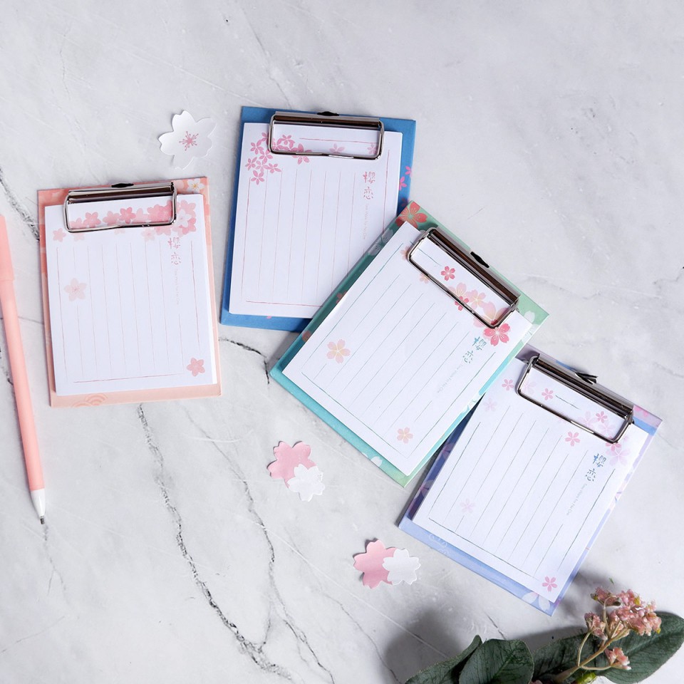 Koleksi kertas memo ini dilengkapi papan clipboard dengan penjepit yang bisa kamu gunakan sebagai alas. Dengan ukuran yang praktis sebesar telapak tangan, memo ini mudah dibawa dan disimpan di dalam saku. Tersedia dalam 4 varian dengan tema Sakura.