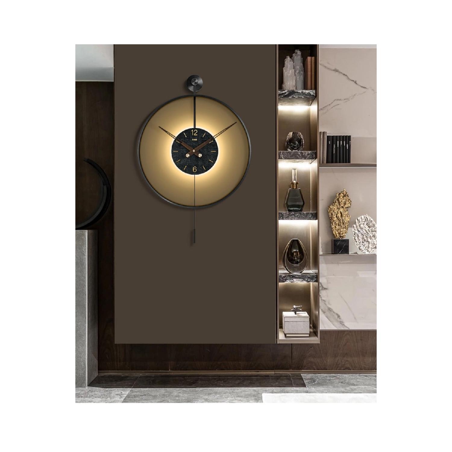 Timelles Black - Светодиод на батарейках - Черный сердечник из настоящего стекла, Современные декоративные металлические настенные часы с маятником чёрный