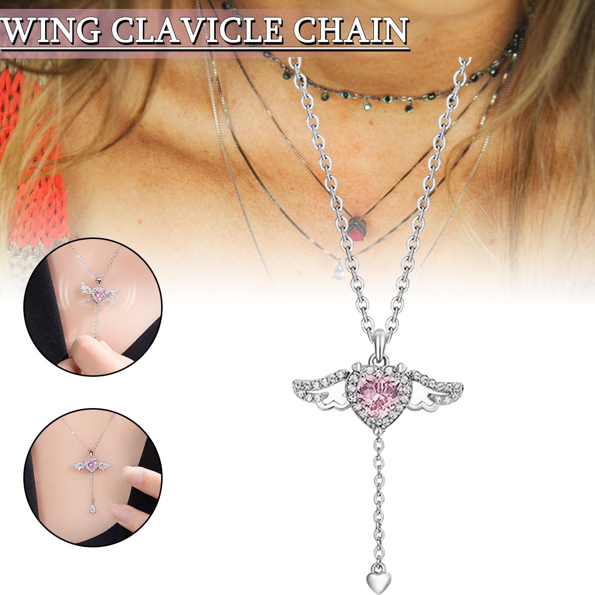 Tingml Купидон Сердце Ожерелье Движущиеся Крылья Розовое Сердце Кулон Ключица Цепочка для Женщин